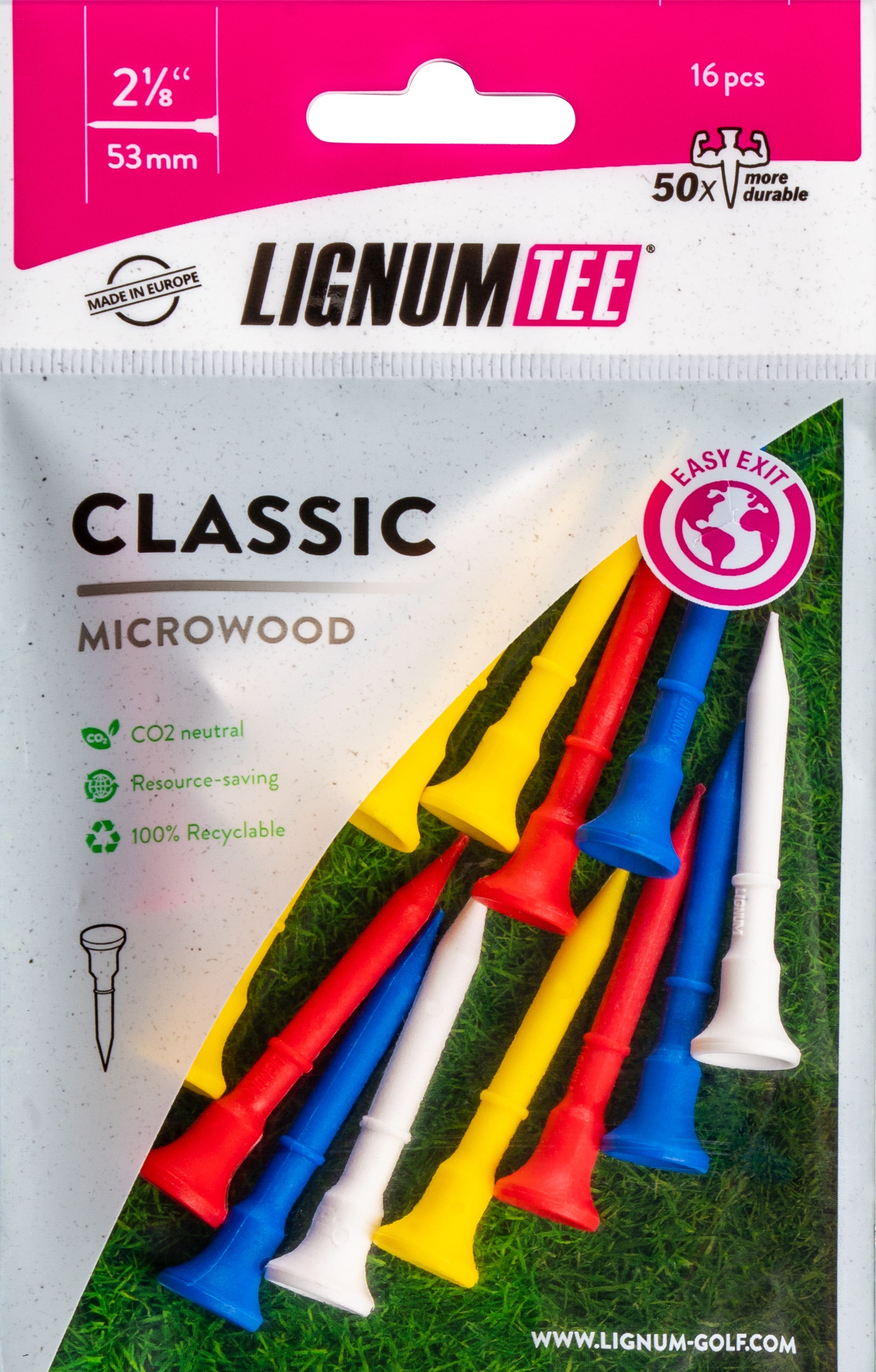 Lignum Tees are designed with a flat head to facilitate optimal ball placement and reduce resistance. Flat head design also provides better feedback and greater distance. The innovative anti spin head design offers perfect height control.